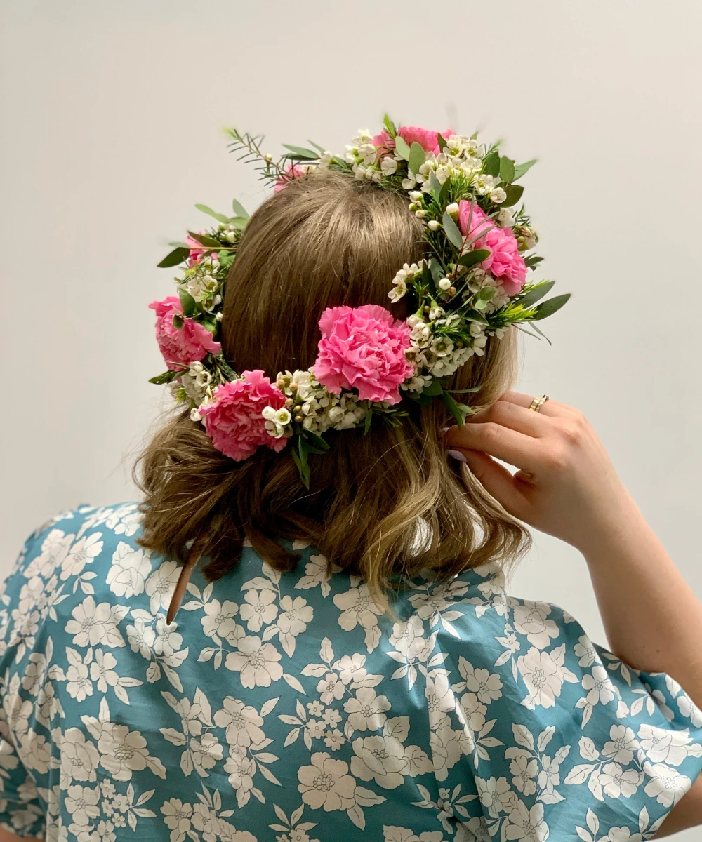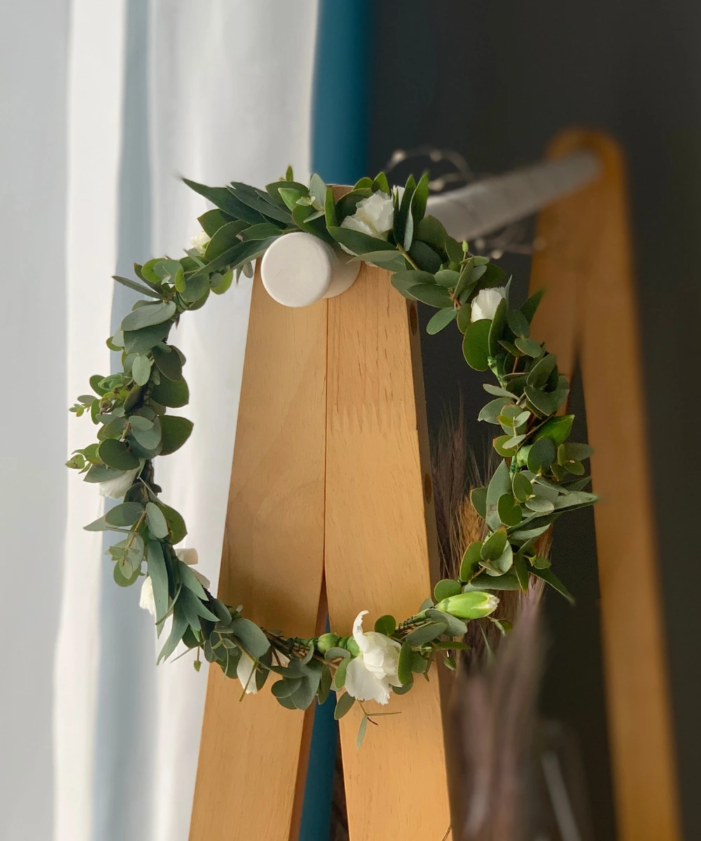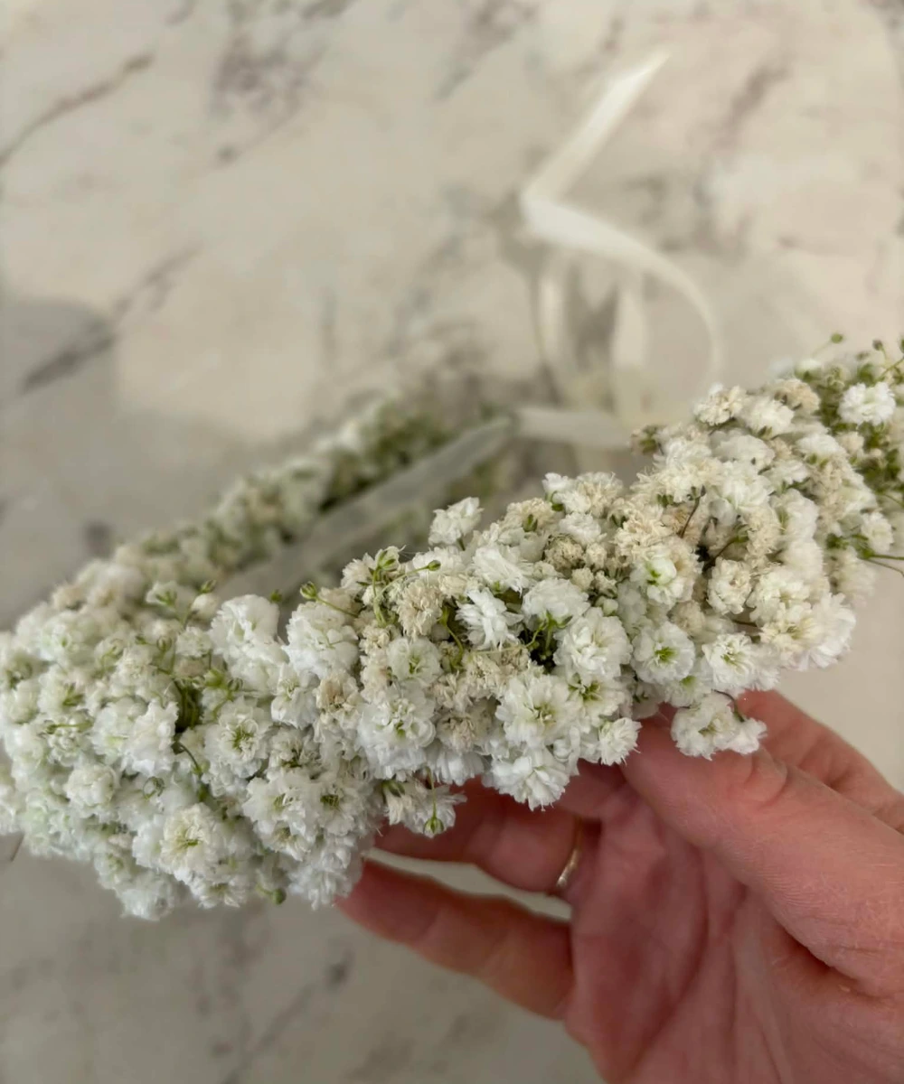Ręcznie tworzone wianki na głowę ślubne i komunijne z naturalnych kwiatów, dopasowane do stylu uroczystości i fryzury.